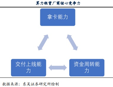 此外,算力租赁行业长期存在三大壁垒,阻碍新供应商的进入:一是稳定的拿卡能力;二是强力的交付、上线和后续运营能力;三是资金周转能力。