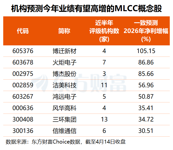 受此消息刺激,MLCC概念板块早盘冲高,宏明电子触及20cm涨停,昀冢科技、双星新材、风华高科等多股跟涨。