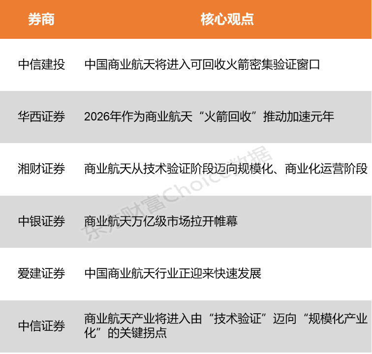 中信建投:中国商业航天将进入可回收火箭密集验证窗口