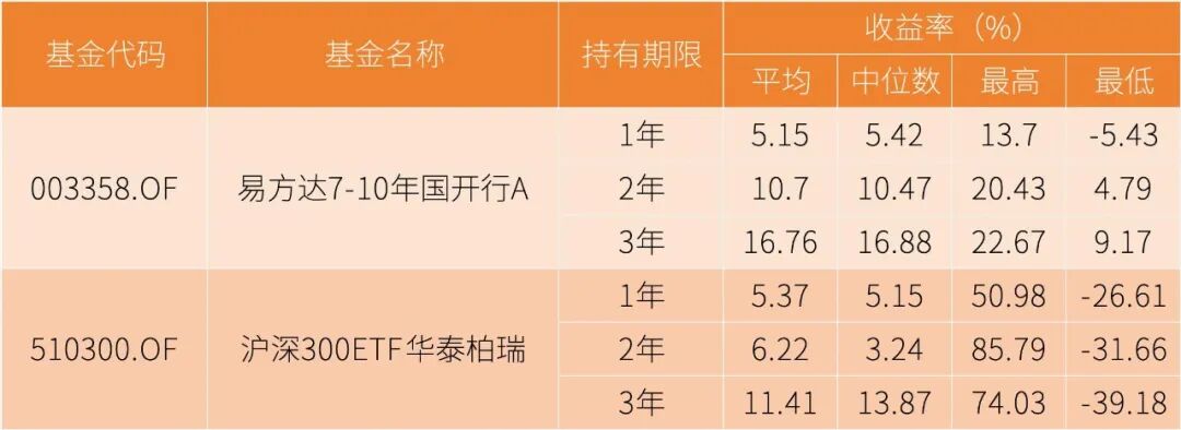 不同持有期沪深300ETF华泰柏瑞和易方达7-10年国开行A收益比较