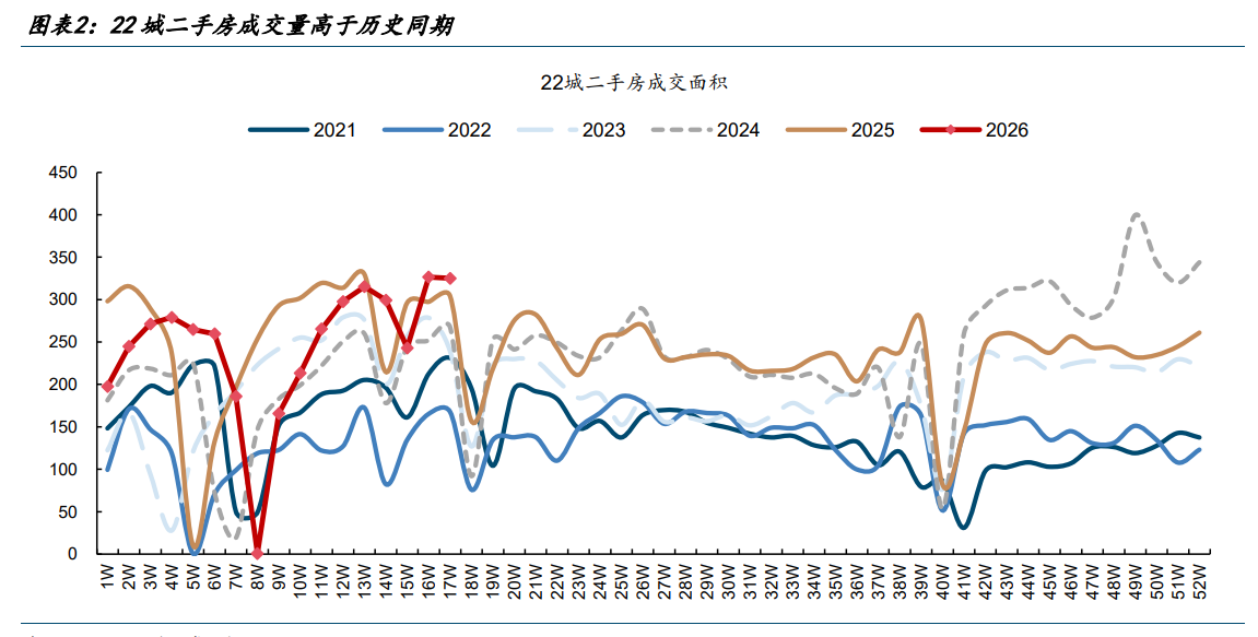 二手房方面,本周景气度底部企稳,22城二手房成交量处在过去5年同期的高位水平,但环比小幅回落0.5%,同比增速由上周的9.8%收窄至8.0%。